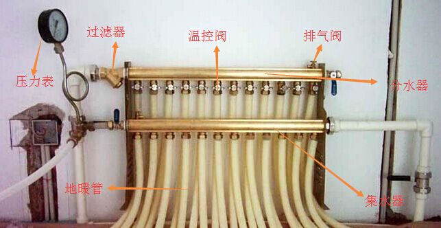 地暖分水器是水系统中,用于连接各路加热管供、回水的配、集水装置,按进回水分为分水器,集水器,所以称为分集水器或集分水器, 俗称分水器。